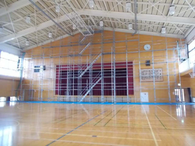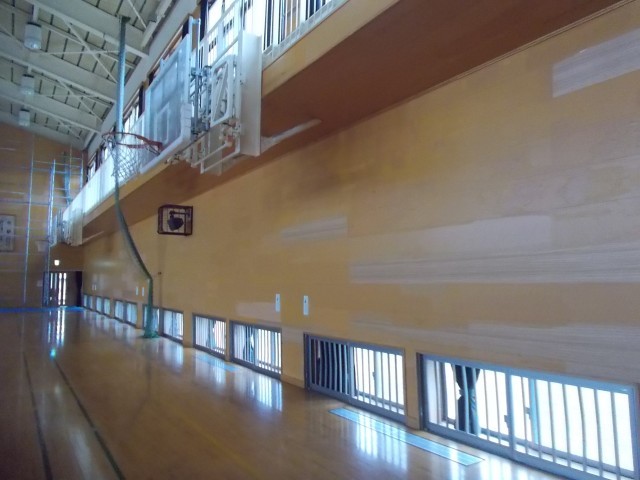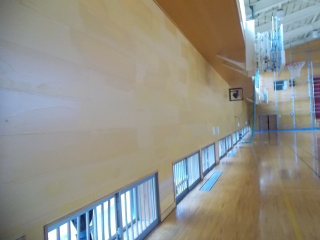 体育館の壁の修繕が終盤を迎えました。