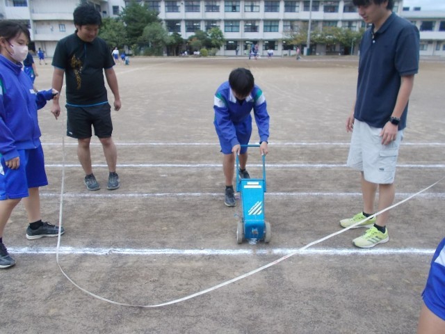 ラインを引き終え、グランド準備が整いました。明日は、いよいよ体育の部です。