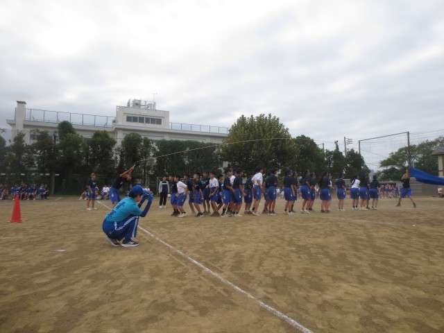 1年長縄の様子です。どのクラスも息を合わせて跳んでいます。