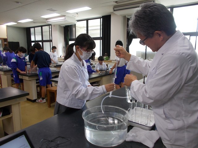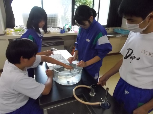 12の理科は、水上置換法を使い実験を行っています。