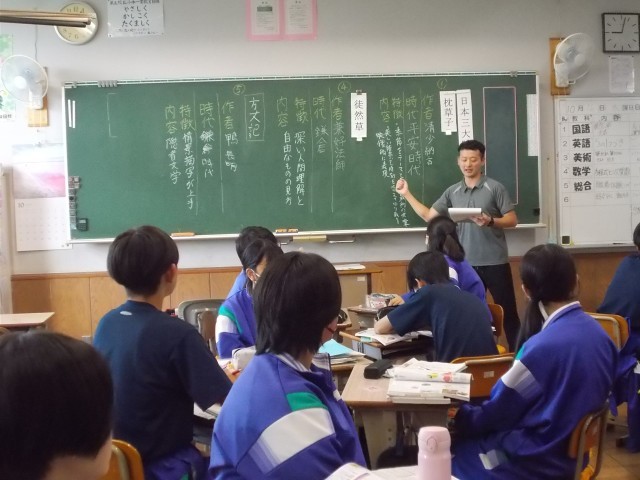 24の国語の様子です。枕草子・徒然草・方丈記について学んでいます。