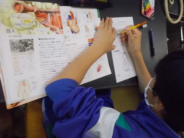 24の理科の授業です。心臓の動きについて学んでいますが、あらためて頑張って動いてくれている心臓に感謝する内容です。