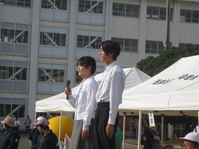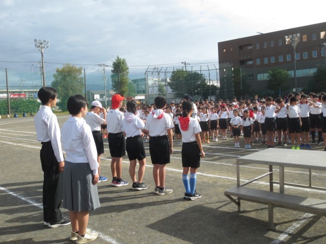 本日秋晴れの中、第五小学校の運動会が開催されています。開会式で、生徒会長が第五小学校のみなさんに激励の言葉をかけています。その言葉かけに、元気に返事をしている第五小のみなさんの姿がとても立派でした。