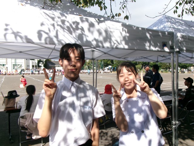 気持ちのよい秋晴れの中、開北小学校で運動会が開催されています。開会式では、五中生を代表して3年生2人が、小学生たちに激励の言葉を掛けました。自分が小学生だった時の運動会の思い出に触れたり、小学生たちが反応しやすいタイミングを考えながら声を掛けたりと、立派な先輩の姿を後輩たちに見せることができました。ありがとうございました。