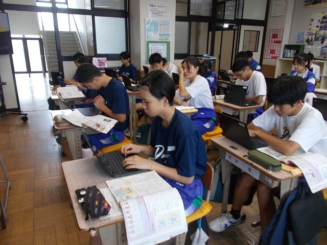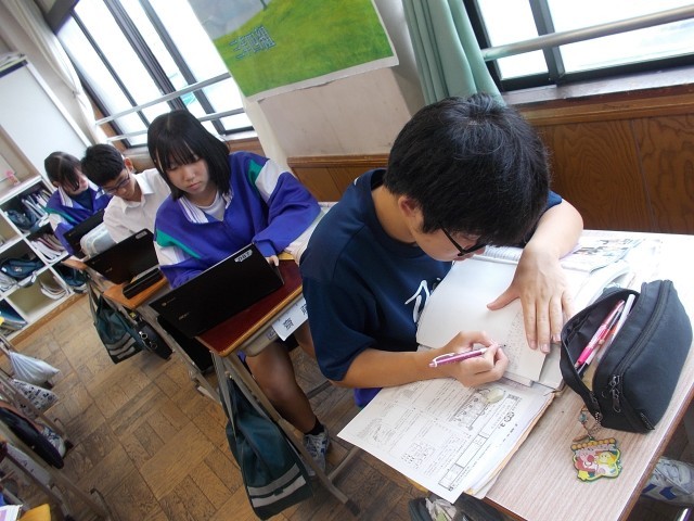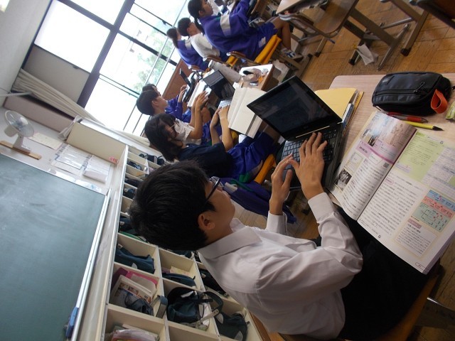 34の公民は、選挙制度のまとめを行っています。いくつかの課題に対して、自分の考えをChromeBookを使い書き込んでいきます。