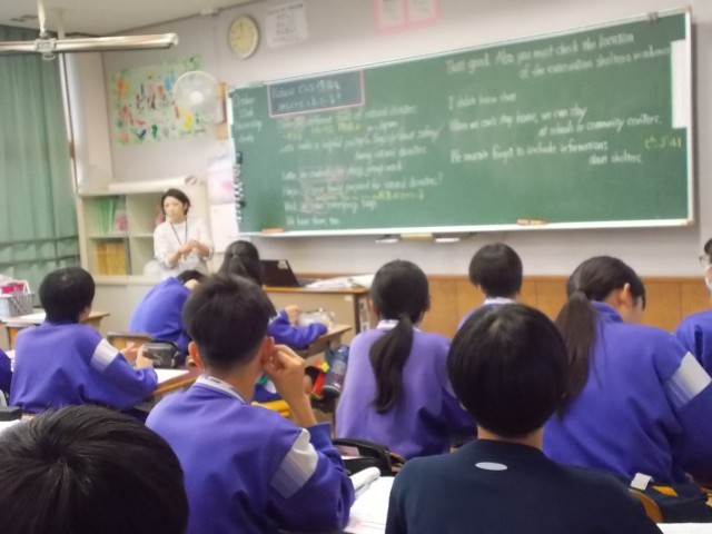 24の英語の授業の様子です。防災について、日常と結びつけながら、英文をより身近にさせていきます。