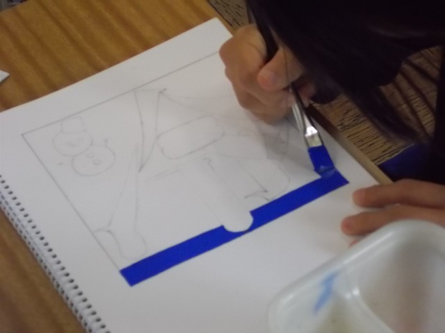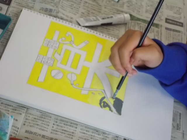 11の1時間目は、美術で絵文字を描いています。
