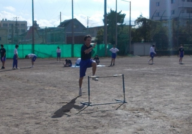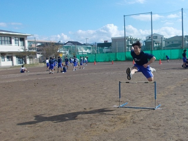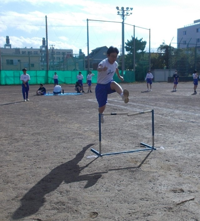 32の保体は、ハードルのタイム測定を行っています。