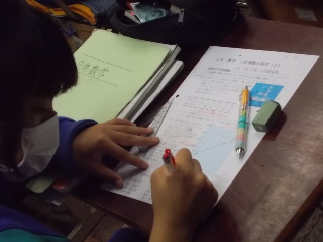 21の数学「一次関数」の学習の様子です。研ぎ澄まされた集中の時間、素晴らしいです。