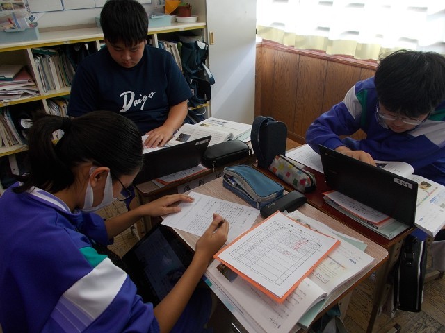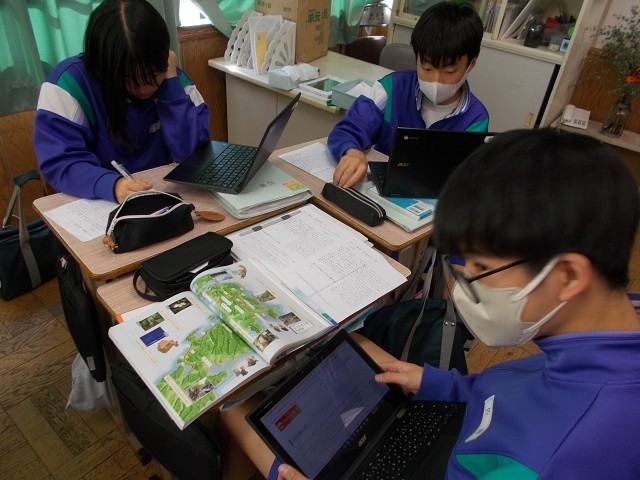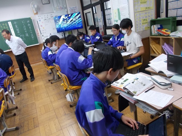 32の国語の様子です。松尾芭蕉の動きを地図や寺の写真で追っています。