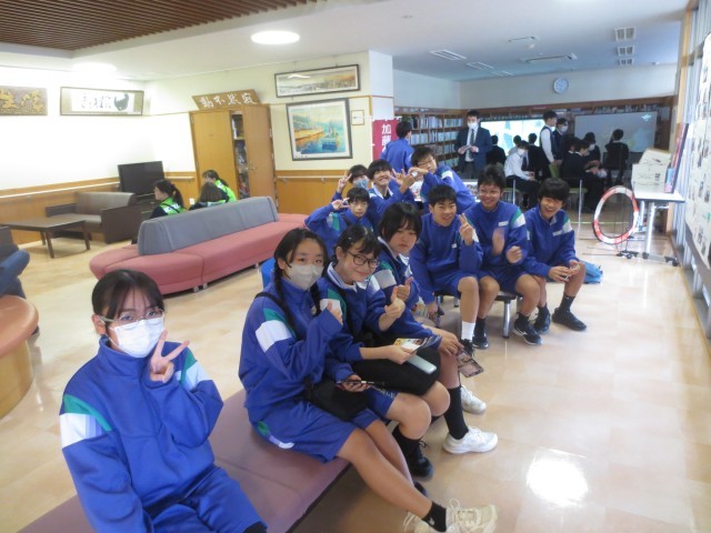 第五地区コミュニティー様のご依頼で、ふれあいの集いのボランティアに参加しました。校長先生直筆の感謝プレートを一人一人もらって、生徒達はやるき倍増です。