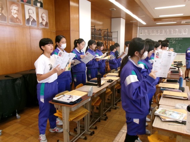 11の音楽 日本の代表的な歌である「赤とんぼ」の歌唱に取り組んでいます。