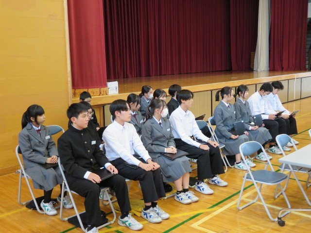 前期役員のふり返りでは、全校生徒が各所で取り組んできた情景が目に浮かぶ話をしました。