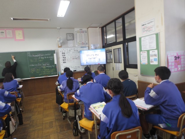 2-4英語では、単語の読みの練習が行われました。デジタル教科書を活用し、フラッシュカードを見ながら瞬時に英語の発音と意味を習得していきます。