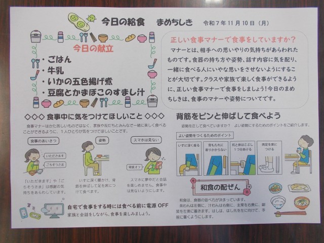 ごはん 牛乳 いかの五色揚げ煮 豆腐とかまぼこのすまし
