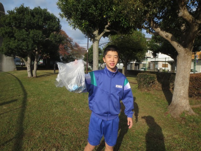 ゴミが落ちていないか、目を凝らしながら回収しています。