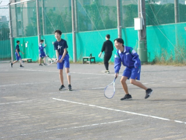 33の保体は、ソフトテニスです。昨日より風が弱く、気持ちの良い活動になっています。ラケットでボールを弾く音が、とても心地よいです。