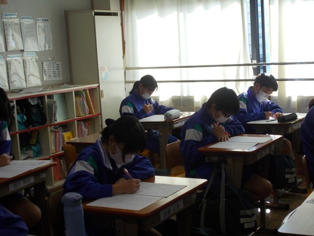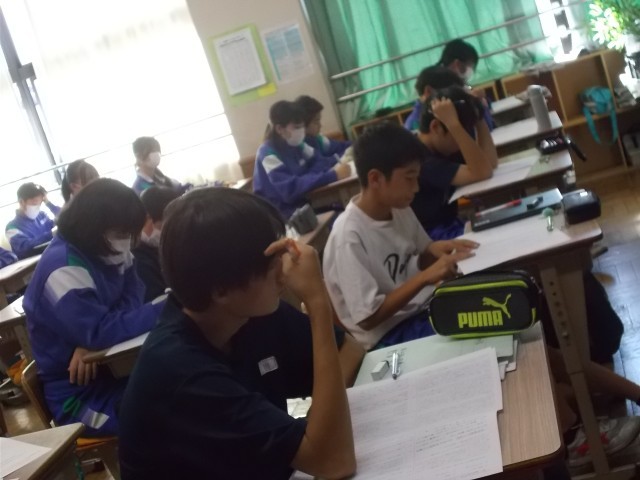 14の国語は、期末テスト返しです。どこから出題したのか、問題の意図は何だったのか?説明を聞きながら納得度を高めていきます。