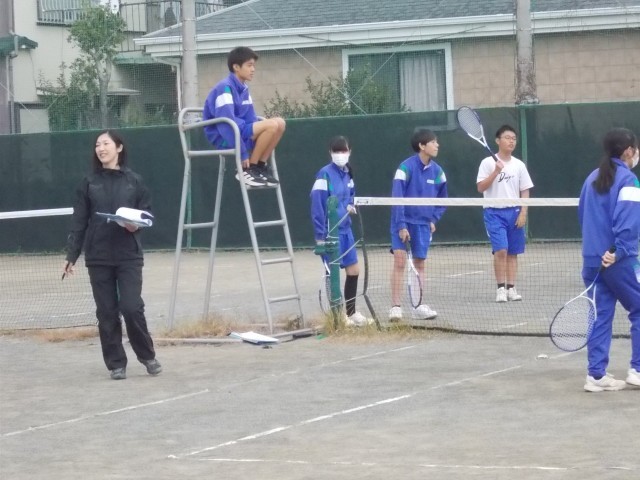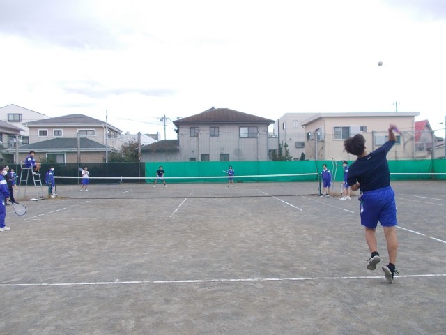 32の保体の様子です。秋色から冬色に変化している中、元気よくソフトテニスに取り組みます。