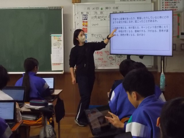 13の保健の様子です。自分の精神と身体症状の関係性について考えています。