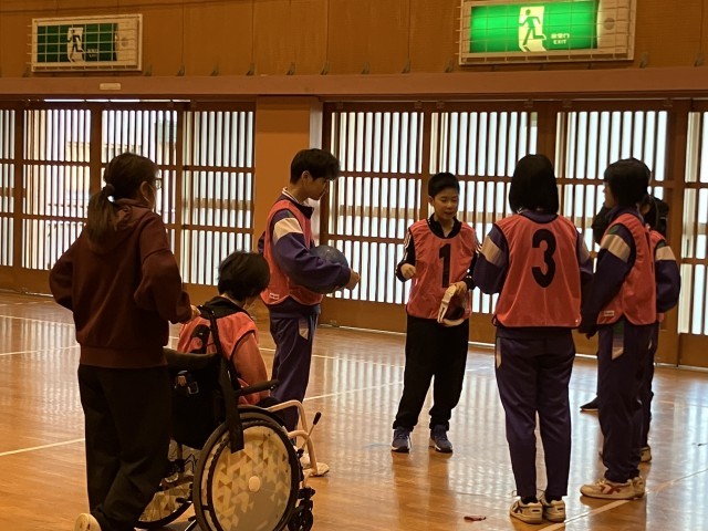 本日は、福祉委員会による福祉交流会が行われました。福祉委員会のみなさんは、沼津視覚特別支援学校と沼津聴覚特別支援学校の2つに分かれて交流に行きました。沼津視覚特別支援学校では、みんなでスポーツでの交流を行いました。初めての競技に戸惑いもありましたが、楽しく行うことがきました。