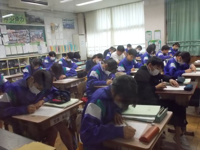 24の理科・21の英語・22の数学の様子です。深まる秋の中、生徒の集中の深まりも素晴らしいです。