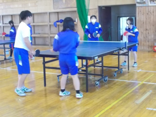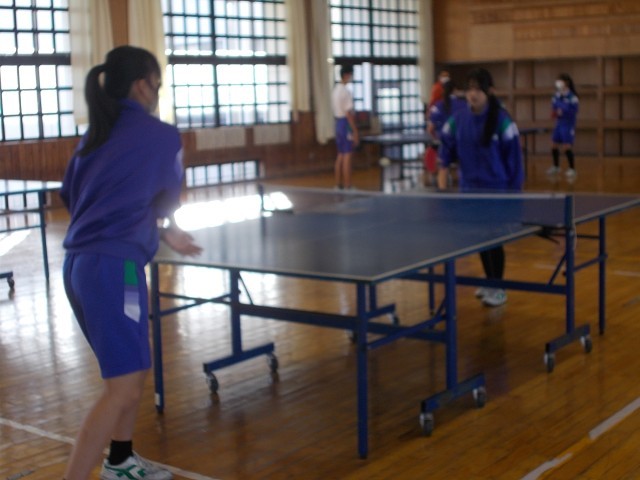 11月授業日の最終日になりました。外では風が吹いていますが、校舎内では楽しく活動を進めています。22の保体・卓球の様子です。
