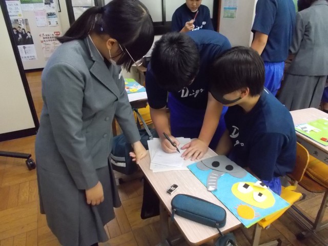 32の家庭の様子です。完成した作品をみんなで鑑賞しています。
