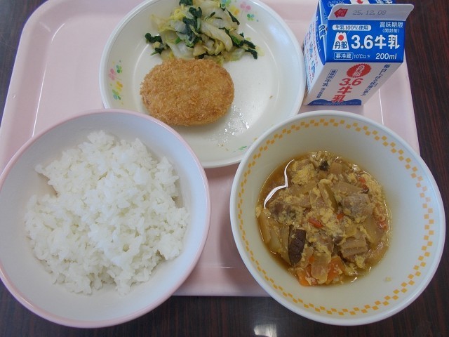 ごはん 牛乳 親子煮 大豆コロッケ 白菜のおひたし