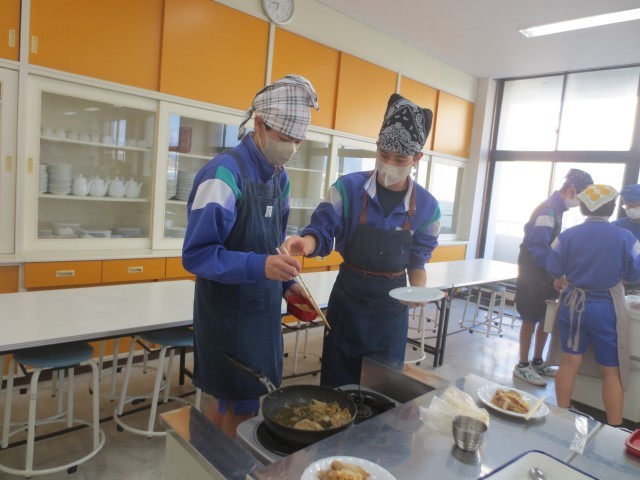 2年生の調理実習の様子です。4クラスとも、美味しい豚の生姜焼きができたようです。生徒達は、自分たちが作った生姜焼きの味に大満足の様子でした。生姜焼きは、お世話になった2年部の先生方にも分けられ、先生方からも好評でした。一生懸命作った、生姜焼きごちそうさまでした。