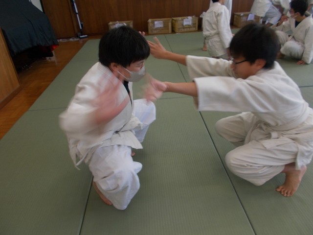 22の柔道の様子です。本時が第1時で、昨年の復習からスタートしています。
