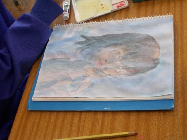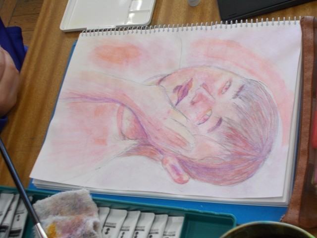 34の美術の様子です。毎時間、手を加えることにより、表情の深みが増していきます。