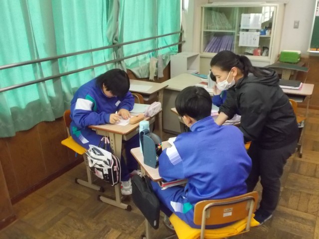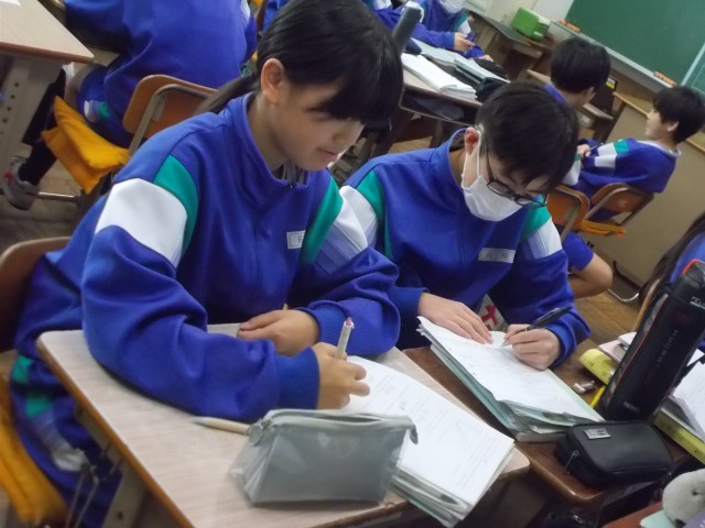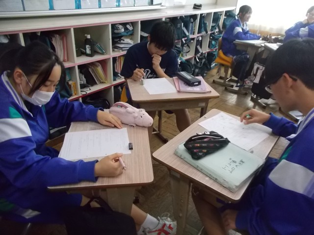 11の数学の様子です。互いにしゃべりながら、より良いところに持っていきます。グループワークがとても上手です。