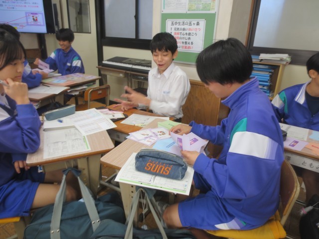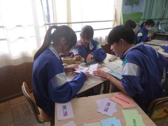 34家庭科では、ライフプランニングについて、マネープランカードを引きながら考えています。実際にこれから、生きていくうえで起こるだろう出来事を想像しながら、シュミレーションしていきます。