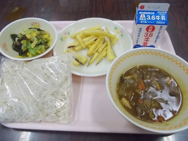 ソフトメンカレーソース 牛乳 こんにゃくサラダ カリカリさつまいも