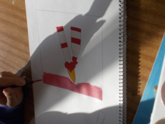 11の美術は、東からの太陽の光を浴びながら進んでいます。ロゴづくりが進んでいます。