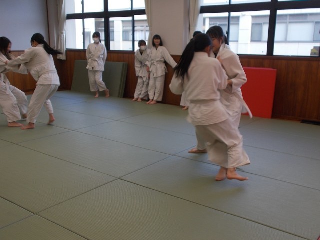 22の保体は、中学校生活最後の柔道の授業です。正しい礼法から、寝技を含めた試合さながらの乱取練習を行いました。よくここまで成長し、危険を伴う競技を安全にできるようになったと感心するばかりです。
