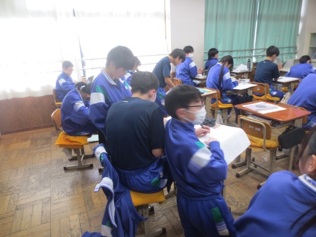 11数学では、1月に行われる学力調査に向けて問題を解いています。困ったときには、すぐに教えあえる人間関係が形成されています。