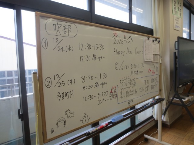 吹奏楽部は、明日のクリスマスコンサートに向けて、最終調整です。11月に行われた、「ふれあいの集い」での素晴らしかった演奏から、さらに成長した第五中吹奏楽部のパフォーマンスを楽しみにしています。