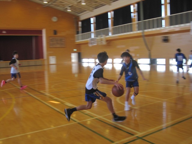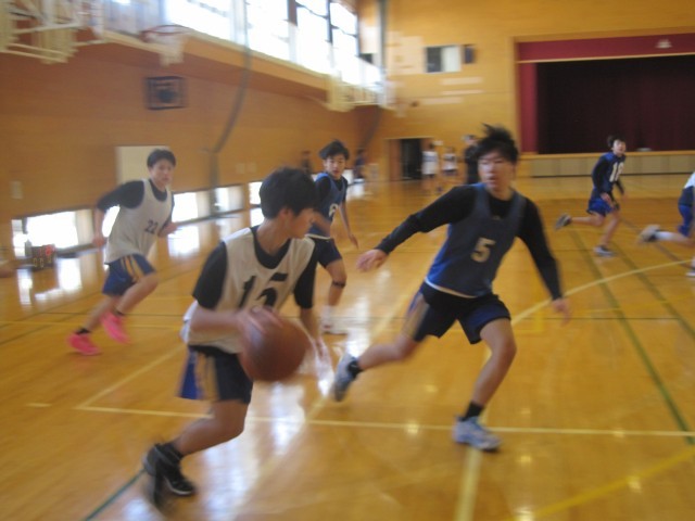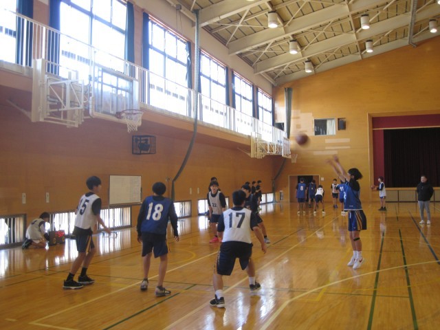 男子バスケットボール部は、年末に行った練習をゲームでどのように生かすかチームで考えながら、実践練習をしています。
