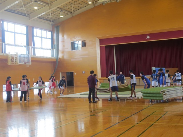 いよいよ、明日から3学期が始まります。3学期の始業式では、何か特別なことが起こりそうです。準備を手伝っていただいた、男・女バスケットボール部のみなさんご協力ありがとうございました。