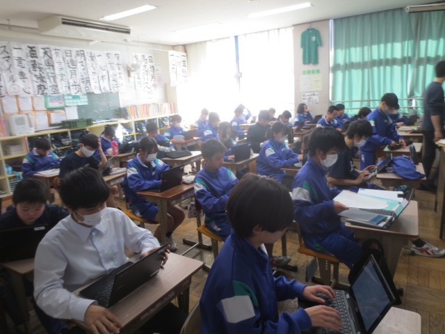 シェイクアウト訓練後には、振り返りの時間を設けました。自分の行動は適切だったか、迅速に判断できていたかを、一人一台端末を活用して振り返るとともに、それぞれの場所でどのような対応を行ったのかをクラス内で話し合いました。地震は、いつ、どこで発生するか分かりません。その時の行動が、自分の身の安全に大きく関わります。いざという時に自分の身を守る行動がとれるよう、子どもたち自身が考え、判断する力を育てる防災教育に今後も取り組んでいきます。