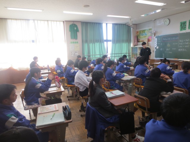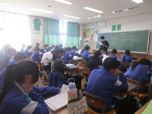 12英語では、過去形の単元に入っています。「冬休みにあったことを伝えよう」という目標に対して、小学校で学んだ過去形に加えて、より詳しく伝えられるようにいろいろな動詞を学び自分の伝えたいことを広げていきます。
