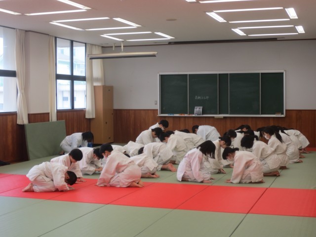 14体育の柔道の終わりの場面では、瞑想を行い、心を落ち着かせた後、お互いに礼を交わして授業を締めくくっていました。技の習得だけでなく、心を整え、相手を思いやる柔道の精神を学ぶ時間となりました。