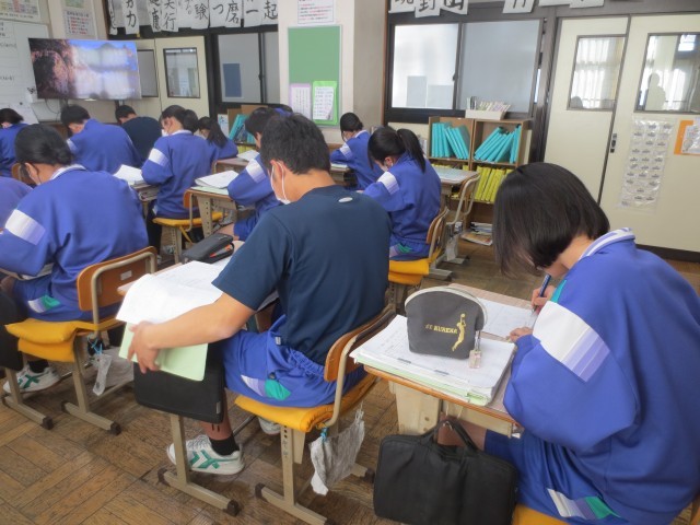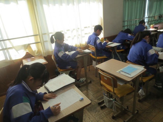 23数学では、与えられたプリント課題に対して、一つ一つの条件を確認しながら、黙々と考えを深める生徒の姿が見られました。集中して問題に向き合い、自分の力で解決しようとするその姿勢はとても立派でした。