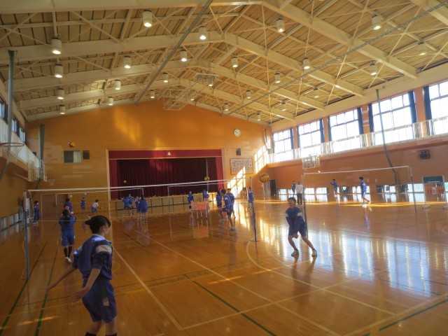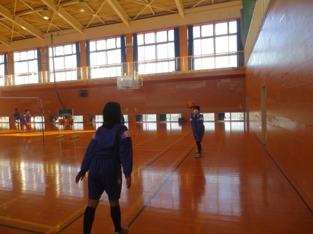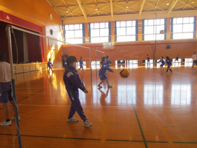 23体育ではバレーボールの単元に入りました。アンダーハンドバスの練習をペアで行っています。