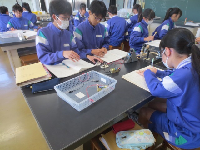 22の理科では、直列と並列について学習しています。電流のはたらきについて理解を深めるため、直列回路と並列回路の実験を行い、実験後は、実験をもとにノートにまとめています。
