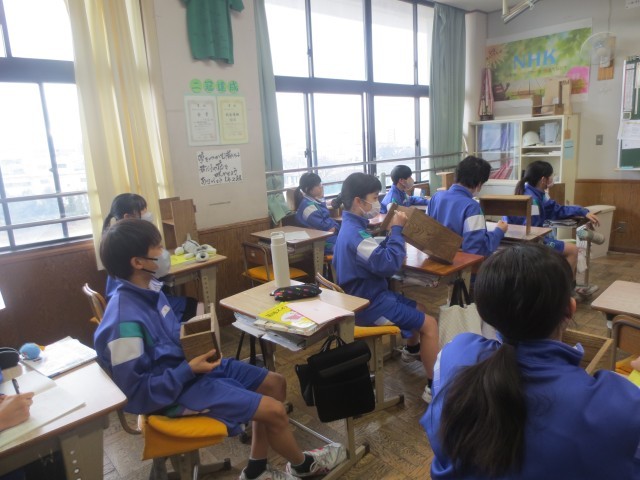 12技術では、生徒一人一人が設計・製作した作品をどこに、どのように展示するかについて話し合いを行いました。授業参観当日は、生徒の思いが込められた作品展示を、ぜひご覧ください。