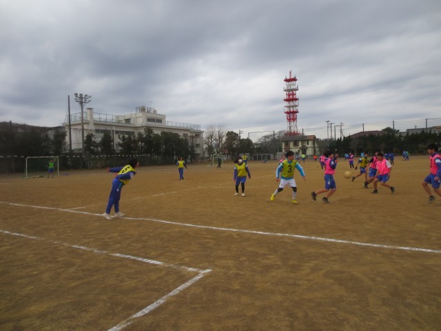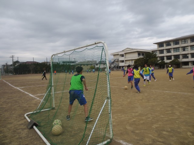 31体育では、サッカーのゲーム形式の学習を行いました。これまでの練習で身に付けてきたパスや動き方を意識しながら、実際のゲームの中で練習の成果を試しています。担任の先生も生徒に負けじと大きな声を出してゲームに参加し、コートには笑顔と活気があふれていました。