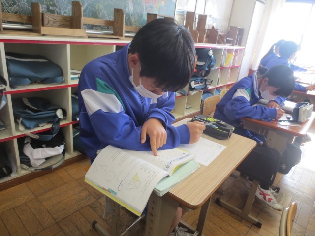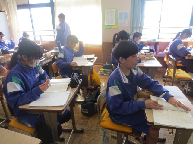 14数学です。どんなに難しい図形の問題に挑んでいても、1年生は、常に明るく前向きです。